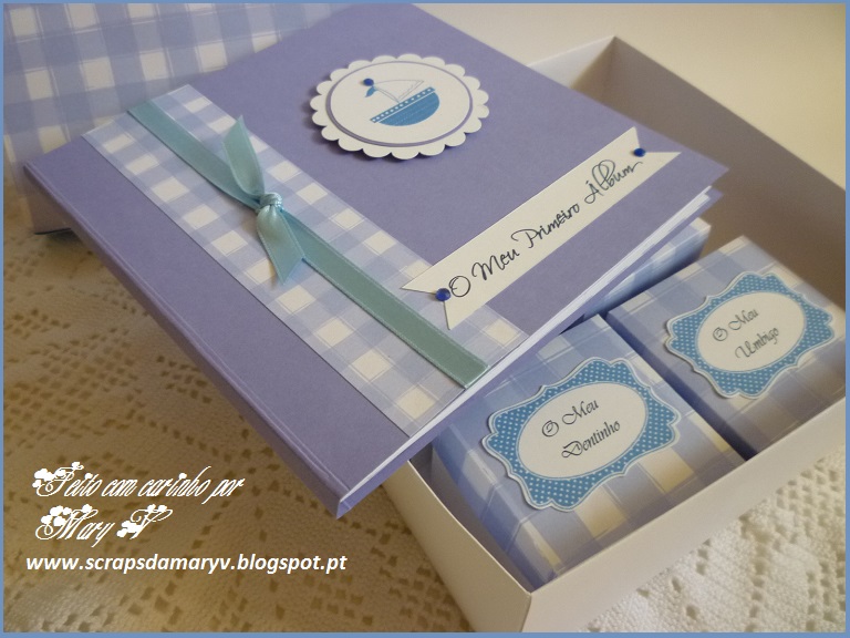 Hoje trago um projeto feito para colocar as primeiras fotos do bebé e as primeiras "coisinhas" após o seu nascimento. É tudo feito de cartão e papel e decorado com papéis decorativos. Espero que gostem.