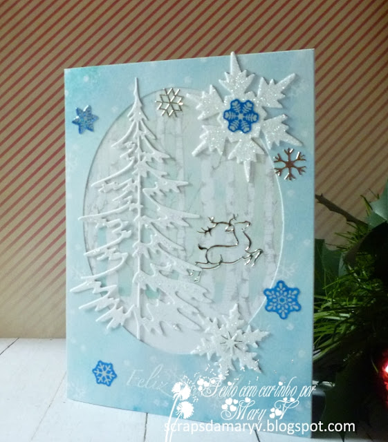 Today I've chosen blue, the woodland and a reindeer. Just a winter card