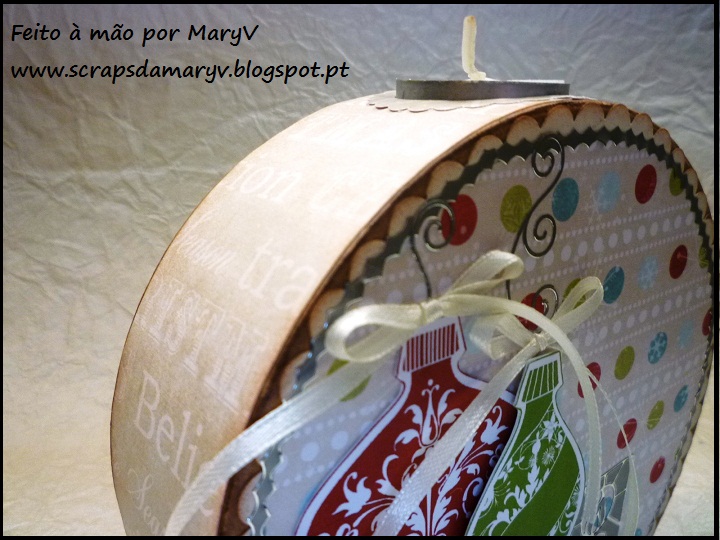 Um último projeto de Natal . . . porque ele acontece sempre que nós quisermos . . . Esta luminária é feita de papel maché (não foi feita por mim pois ainda estou longe de conseguir esse feito), mas foi decorada por mim com alguns elementos que fazem lembrar os postais de Natal. Adoro!