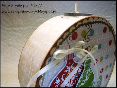 One last Christmas project this year. This paper maché luminary (I had some trouble with the word and still I'm not sure if the name for it is the right one . . .) was decorated by me using some elements which remind me of Christmas cards. I love the final result!