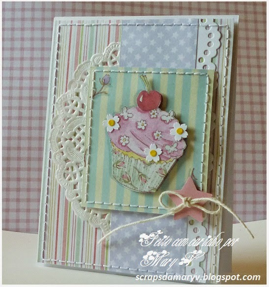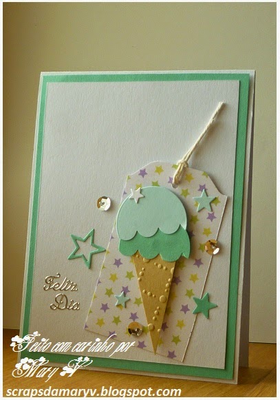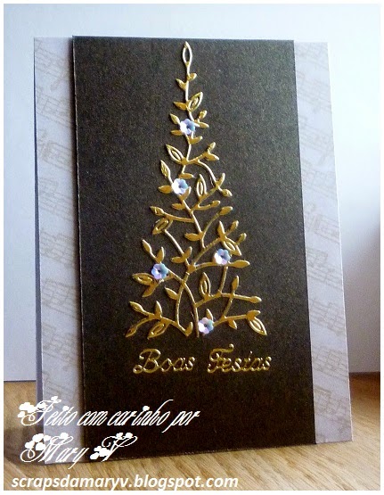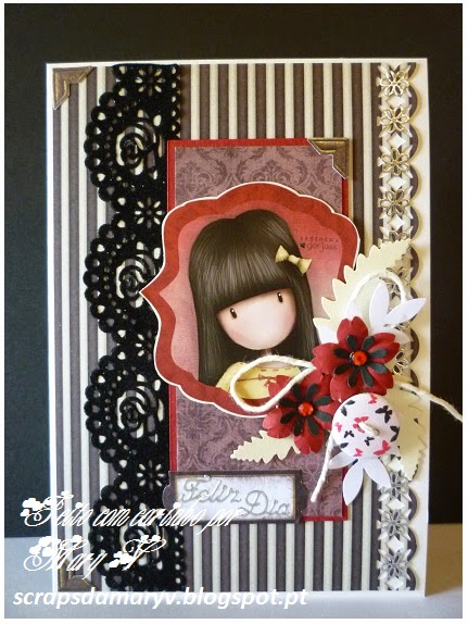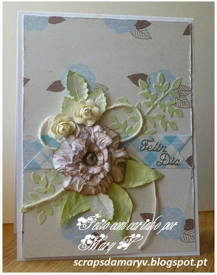 Este foi o primeiro cartão feito por encomenda de 2014. Não parece muito, mas para mim marcou porque a seguir a este muitos outros foram feitos para outras pessoas. Comecei a sentir que o meu trabalho era mais apreciado. Foi também o primeiro cartão que submeti a um blogue de desafios. Deixei de ter medo de mostrar os meus trabalhos e agora eles são vistos por pessoas do mundo inteiro. Recebo comentários de imensas pessoas e isso deixa-me muito feliz. Obrigada a todos!