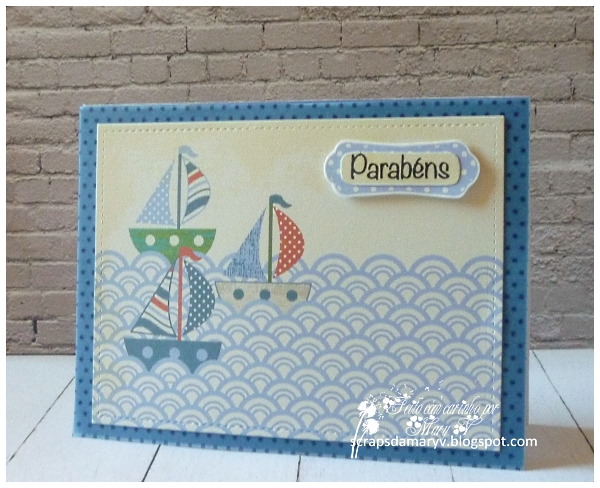 For the sentiment I used, of course, Docerela stamps. In my case these are in Portuguese, but you can check out the store here and look for stamps in English. The sentiment was embossed with white embossing powder.