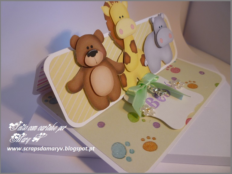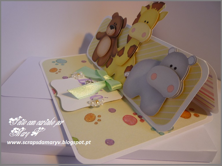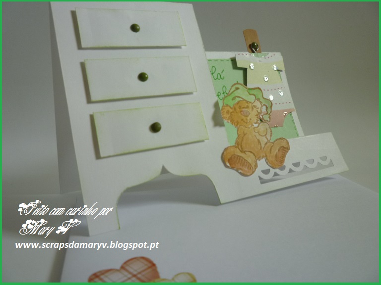 Este cartão resultou de uma encomenda feita por uma colega para oferecer a uma mama grávida. Fiz este cartão e outro que vou postar amanhã. Qual dos dois escolheu ela???