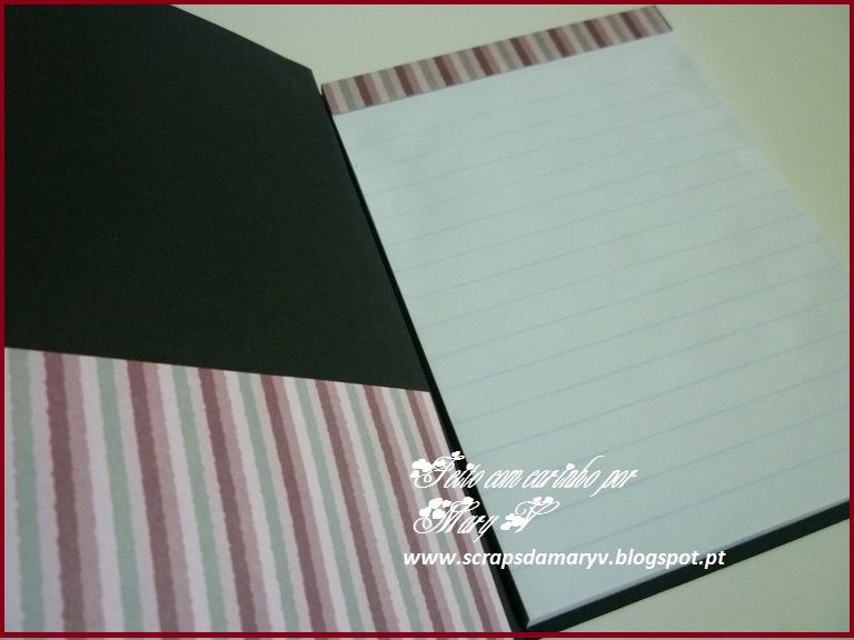 Este bloco de notas foi decorado com papéis da Toke e crie.